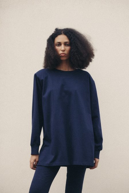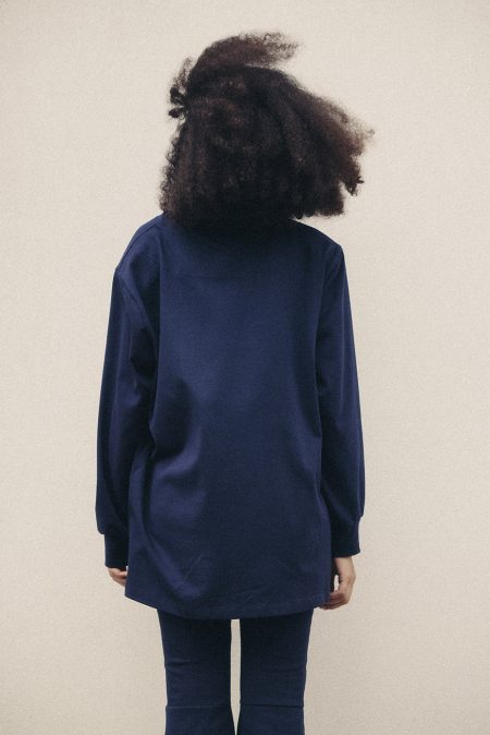 Ta bluza (w składnie 90% bawełna i 10% kaszmir) to komfort i elegancja w jednym. Model do połowy uda z poduszkami w ramionach delikatnie podkreśla sylwetkę, zachowując swobodę ruchów.