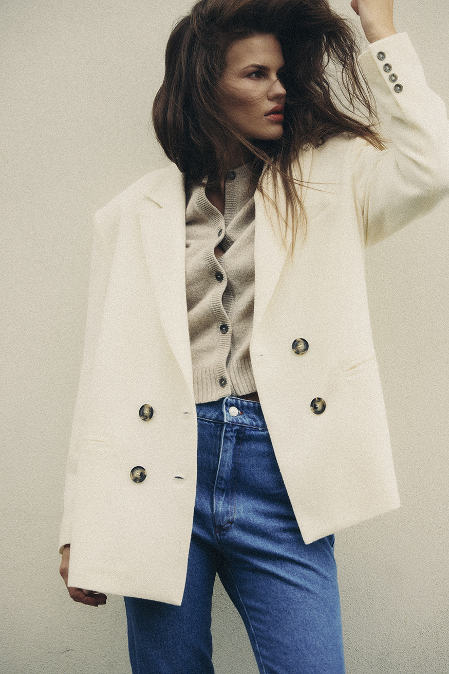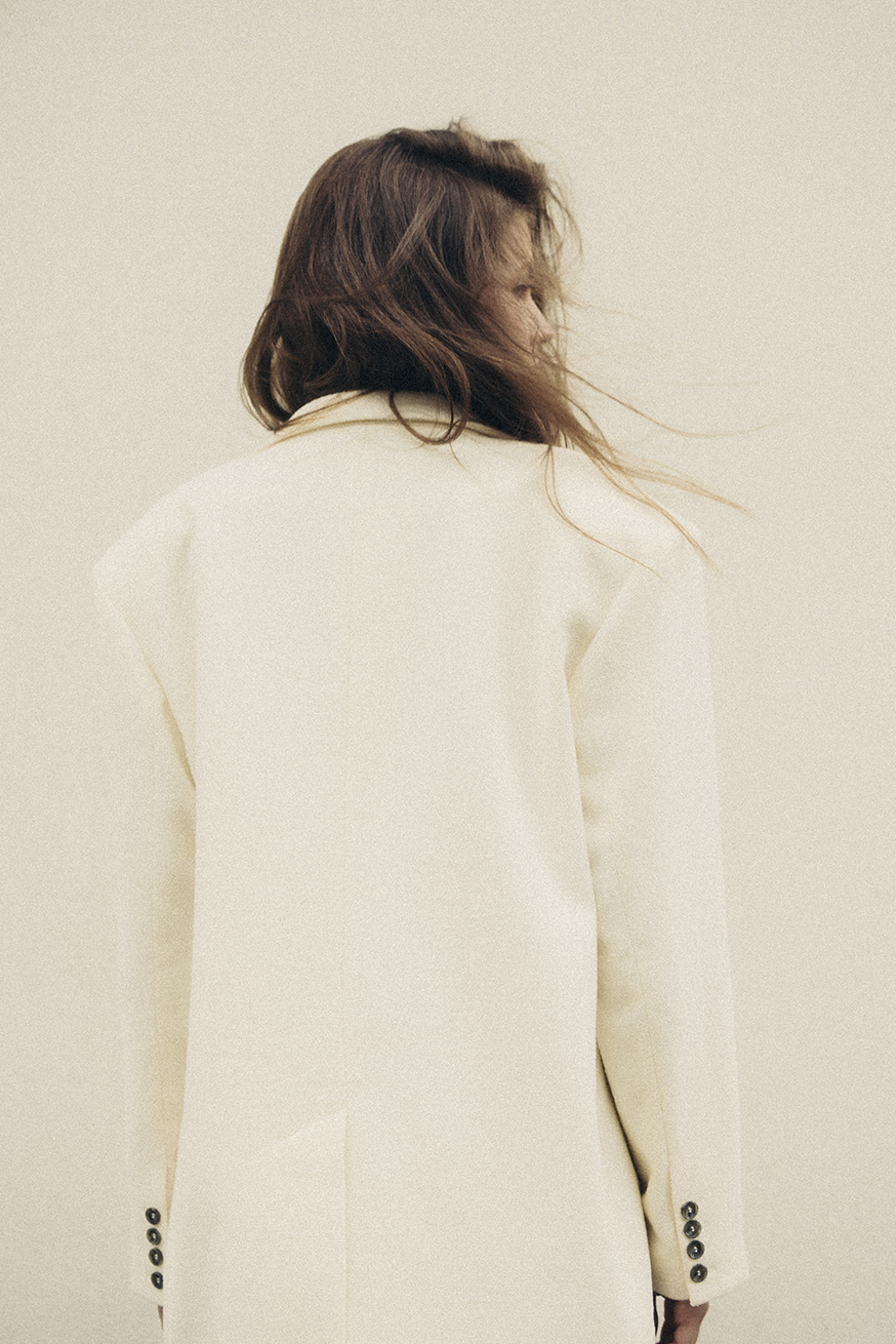 To klasyka w nowoczesnym wydaniu. Oversize’owy krój z poduszkami na ramionach podkreśla sylwetkę i nadaje jej mocny, elegancki charakter.