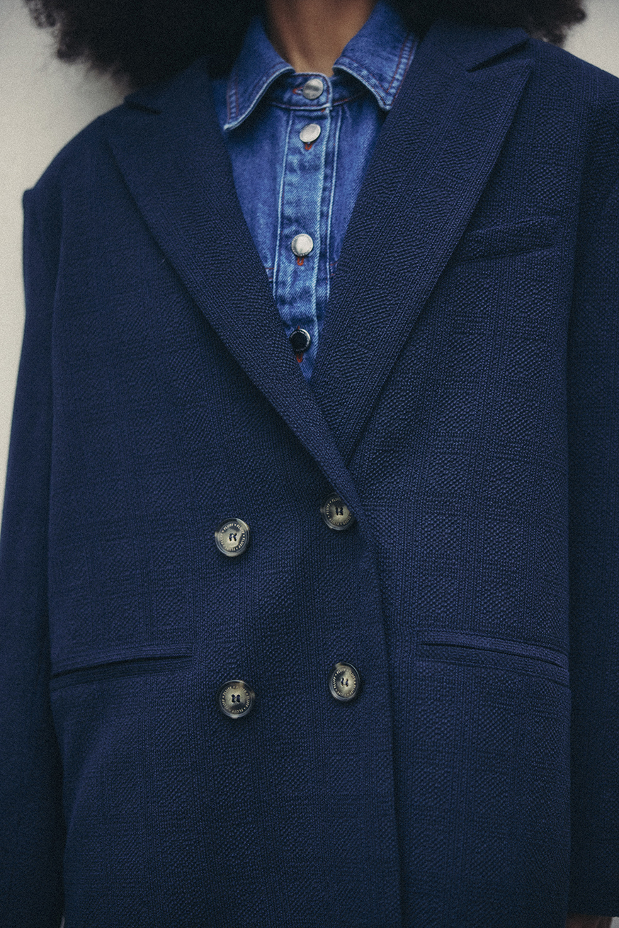 To klasyka w nowoczesnym wydaniu. Oversize’owy krój z poduszkami na ramionach podkreśla sylwetkę i nadaje jej mocny, elegancki charakter.