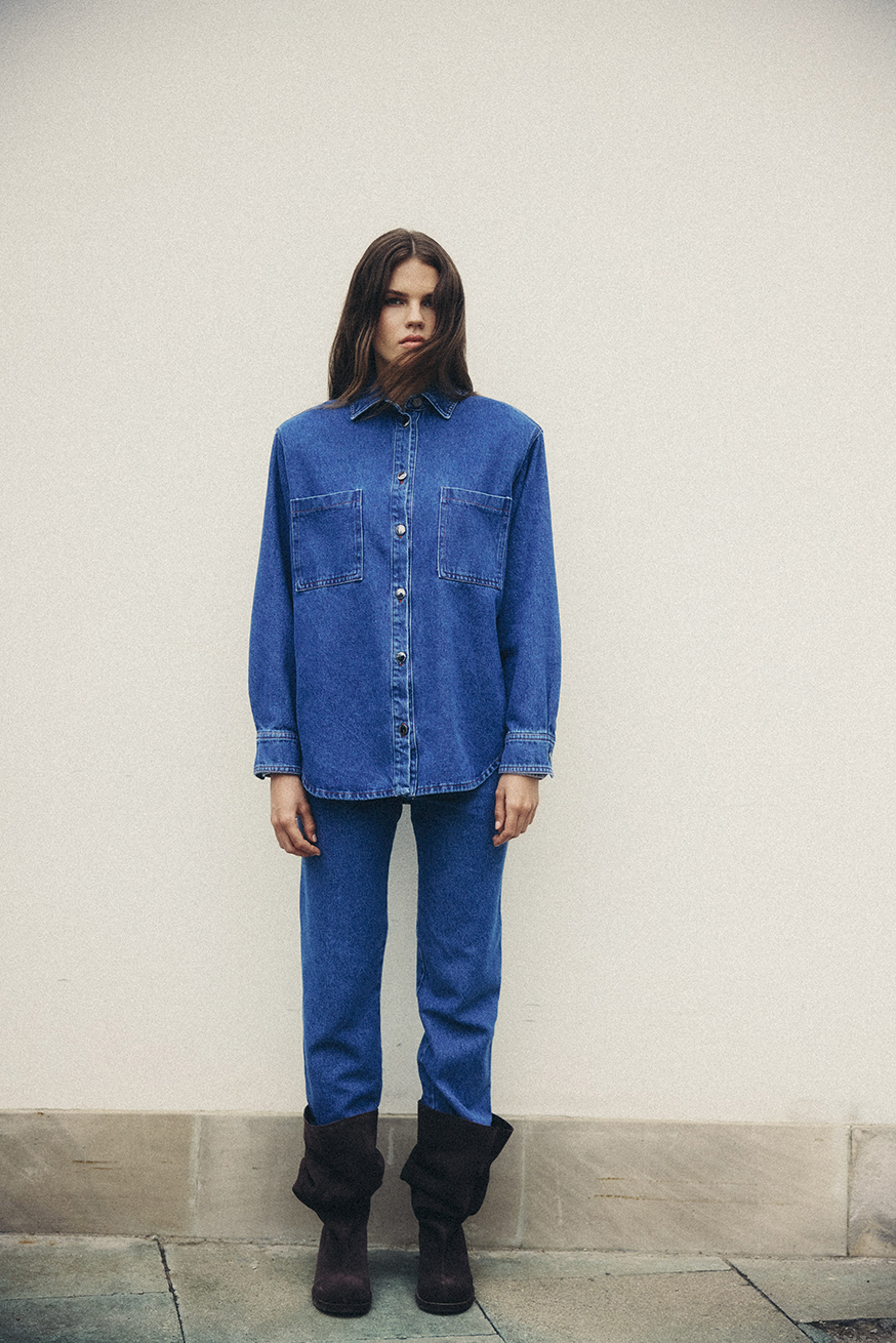 Prosty fason pozwala na wygodne warstwowanie: możesz ją nosić na top lub t-shirt lub bezposrednio na ciało – jest miękka i dobrze się układa. Koszula jeansowa świetnie łączy się z denimowymi spodniami lub spódnicą dla efektu „denim on denim”, ale też z casualowymi legginsami czy spodniami cargo. Idealna dla kobiet szukających koszuli jeansowej damskiej, która łączy ponadczasowy design, naturalny materiał i uniwersalne zastosowanie.