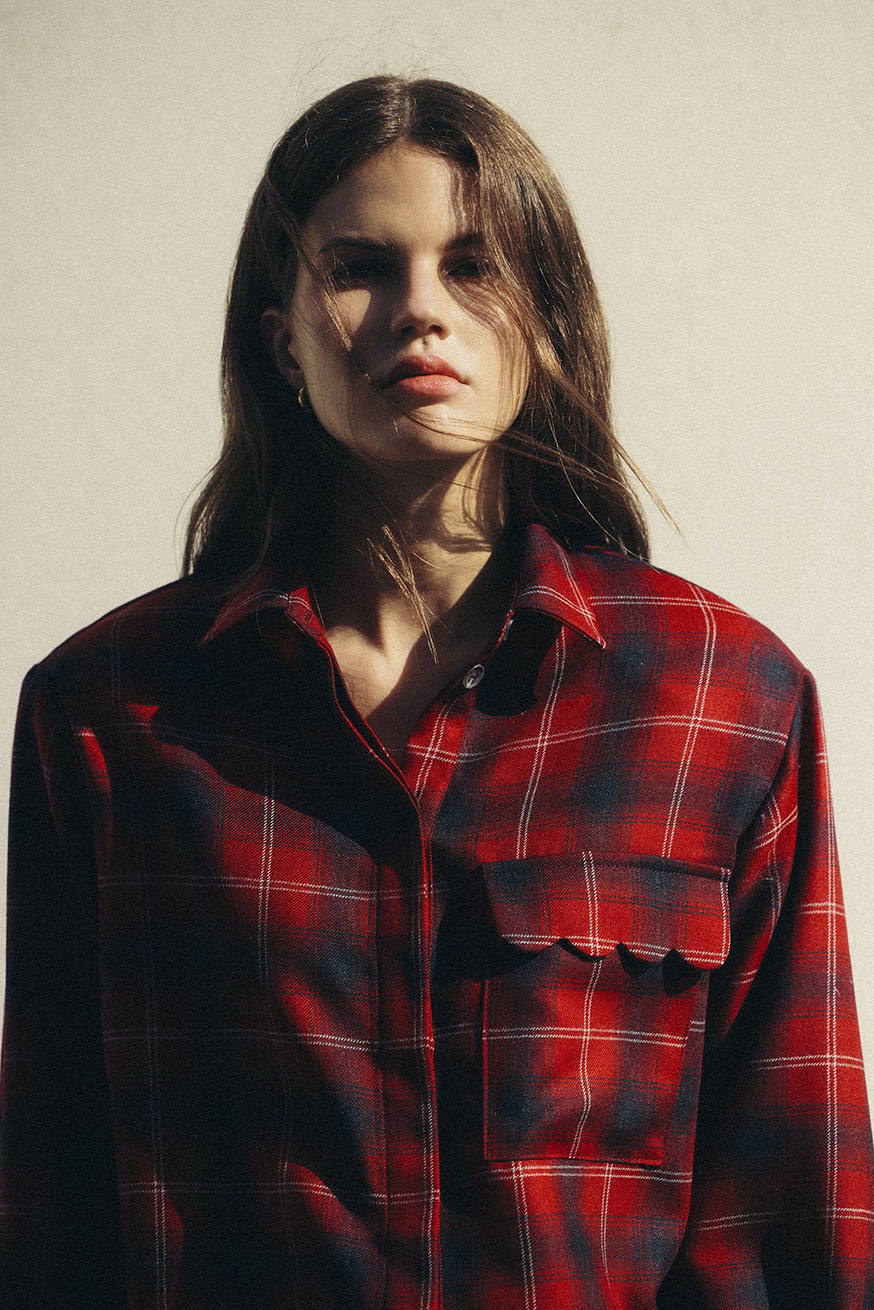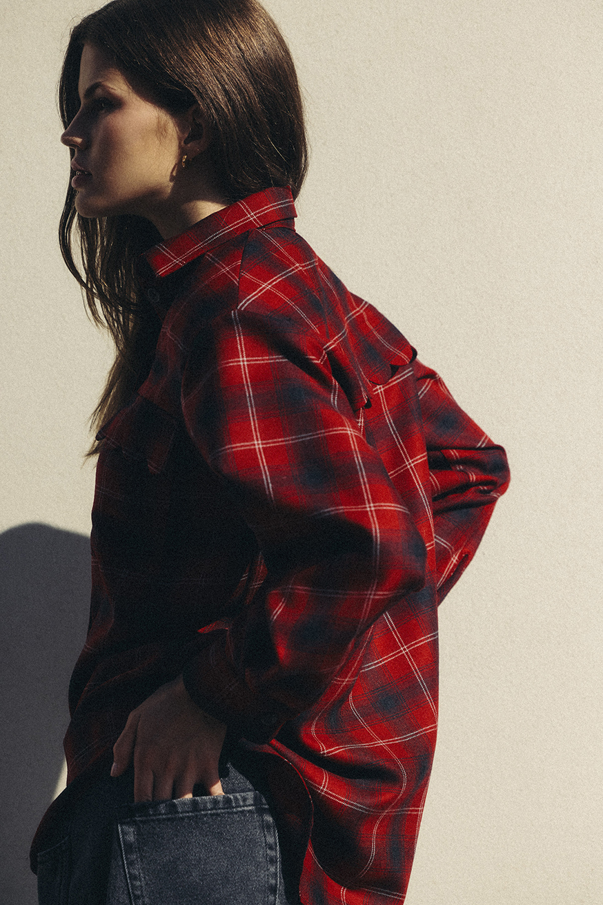 Zapinana na guziki, z delikatnymi poduszkami w ramionach, subtelnie podkreśla sylwetkę, zapewniając komfort i swobodę ruchów. Miękka, naturalna wełna dba o ciepło i przyjemne uczucie na skórze, a wzór kraty dodaje charakteru każdej stylizacji – zarówno casualowej, jak i smart-casual.