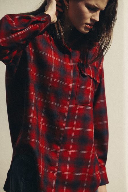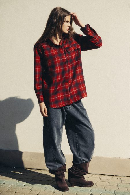 Burgundowa koszula wełniana w kratę wykonana z naturalnej wełny to połączenie klasyki z nowoczesnym stylem.