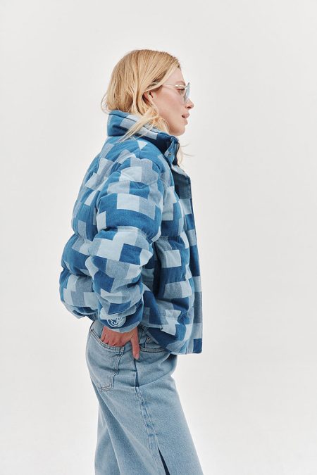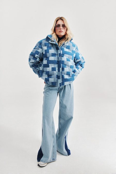 Bomberka Fluff to współczesna interpretacja klasycznej kurtki w unikalnym wydaniu premium. Uszyta z patchworkowego denimu w różnych odcieniach niebieskiego, ta kurtka zimowa przyciąga uwagę i nadaje stylizacjom charakteru.