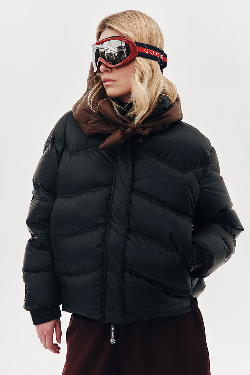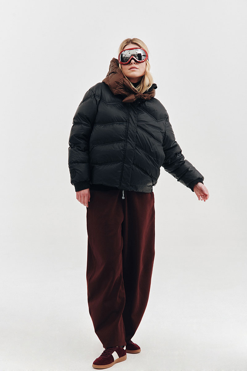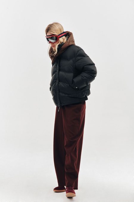 Wypełnienie z naturalnego puchu gęsiego zapewnia wyjątkowe ciepło i lekkość, a napuszona forma z poziomymi pikowaniami nadaje kurtce charakterystyczną, otulającą sylwetkę. Wysoki kołnierz chroni przed chłodem, elastyczne ściągacze w pasie i rękawach podkreślają sportowy detal, a praktyczne kieszenie dodają wygody.