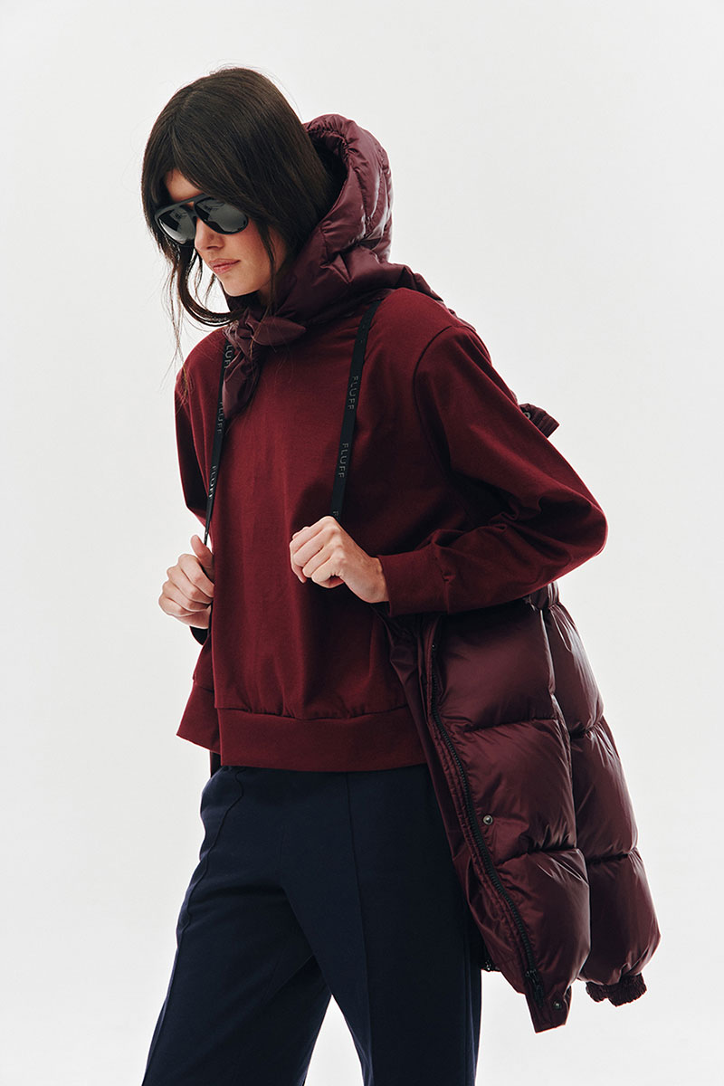 to pikowany, wielofunkcyjny dodatek łączący minimalizm i praktyczność. Wypełniona w 90% naturalnym puchem gęsim i 10% pierzem, zapewnia ciepło i lekkość charakterystyczną dla kurtek Fluff. Dzięki miękkiej konstrukcji nie uciska głowy ani nie niszczy fryzury, a uniwersalna forma pozwala nosić ją na różne sposoby – jako chustkę na głowę, zawiązaną wokół szyi lub jako oryginalny akcent stylizacji.