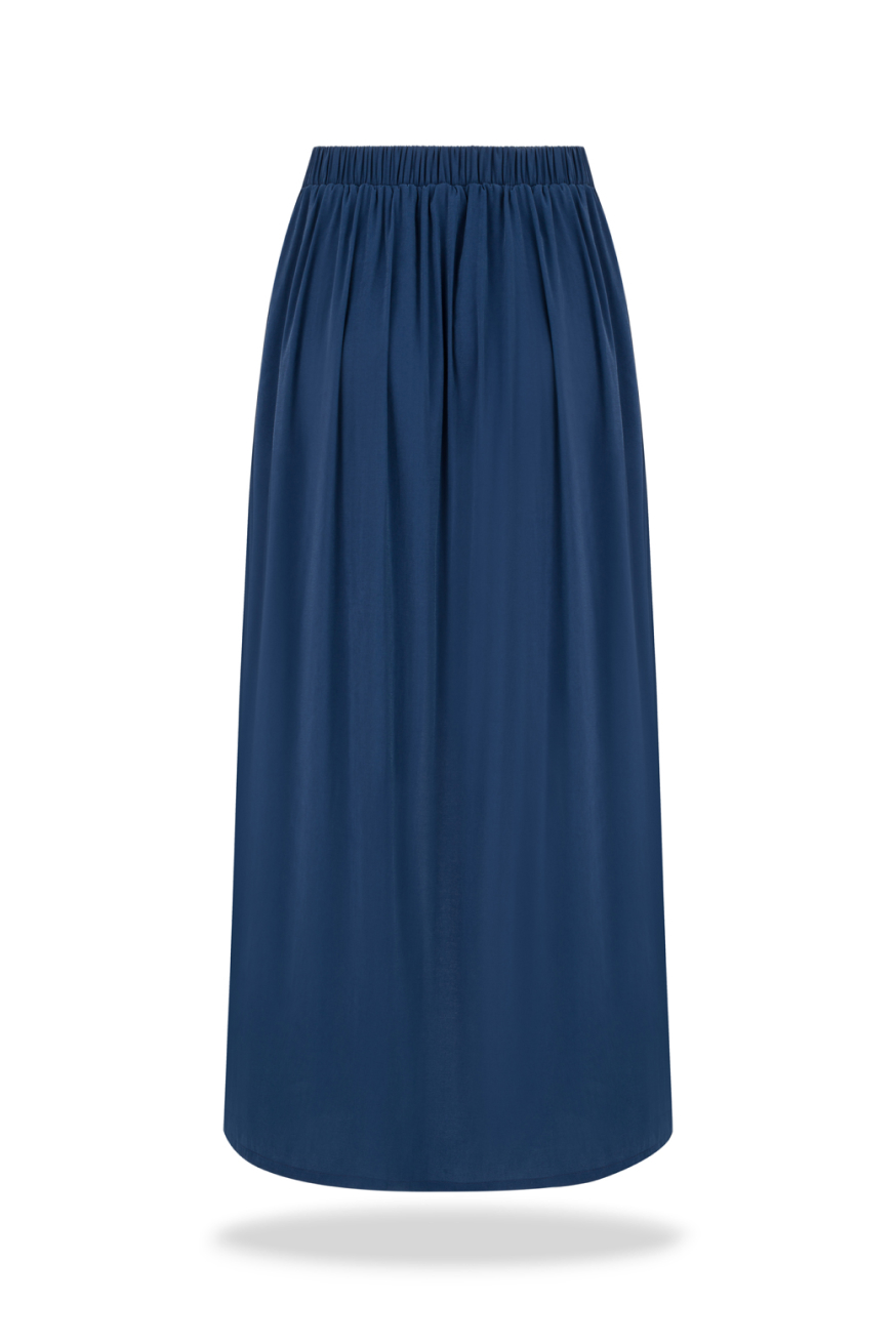 Crafted from a lightweight viscose-based fabric, the skirt drapes beautifully and moves with ease. The material allows the silhouette to remain refined while ensuring all-day comfort. Two side pockets add functionality while maintaining the clean, minimalist line of the design.
