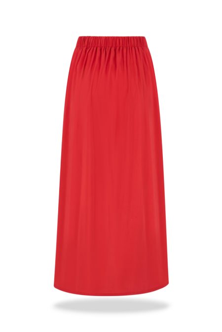 Crafted from a lightweight viscose-based fabric, the skirt drapes beautifully and moves with ease. The material allows the silhouette to remain refined while ensuring all-day comfort. Two side pockets add functionality while maintaining the clean, minimalist line of the design.