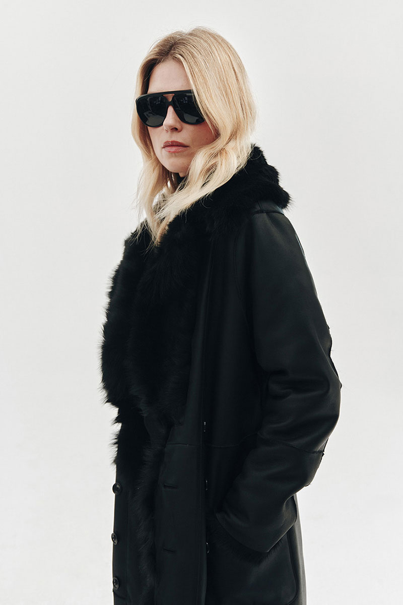 The Fluff reversible women’s shearling coat combines timeless design with everyday functionality. Made from 100% natural calfskin, it offers two distinct looks – a sleek, smooth side and a warm, soft shearling finish on the reverse.