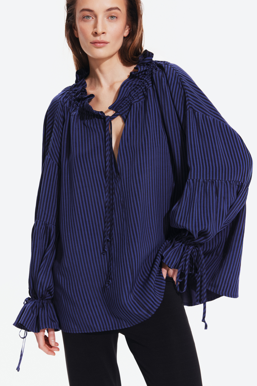 | Colors: Striped flowy shirt Midnight Blue |