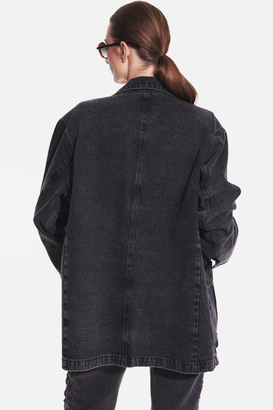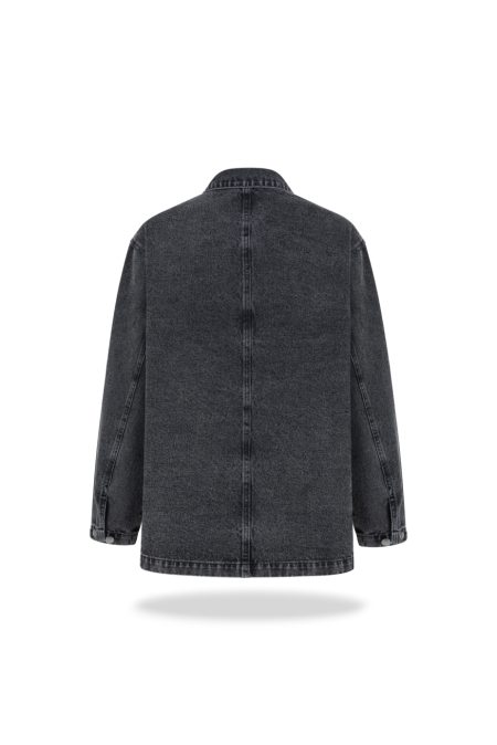 A modern take on the classic denim jacket, inspired by workwear aesthetics and timeless 80s silhouettes. This design combines a relaxed, slightly oversized shape with functional details that give it a confident, contemporary character. Crafted from soft, washed denim, the fabric has a natural texture and subtle vintage feel that only gets better with time. Practical front pockets emphasise the utility-inspired design, while the classic button fastening and structured collar keep the silhouette refined and timeless. The slightly boxy cut allows the jacket to sit effortlessly on the body, making it an easy layering piece for everyday outfits.